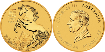 Lunar III 1oz Rok Konia 2026złota moneta kolekcjonerska bita przez Australijską Mennicę Perth Mint, z limitowanej serii prezentującej 12 zwierząt z chińskiego, starożytnego kalendarza lunarnego. | Próba 999.9 | Waga31.1 g | Cena skupuskup15 797 PLN | Cena sprzedażysprzedaż16 494 PLN |