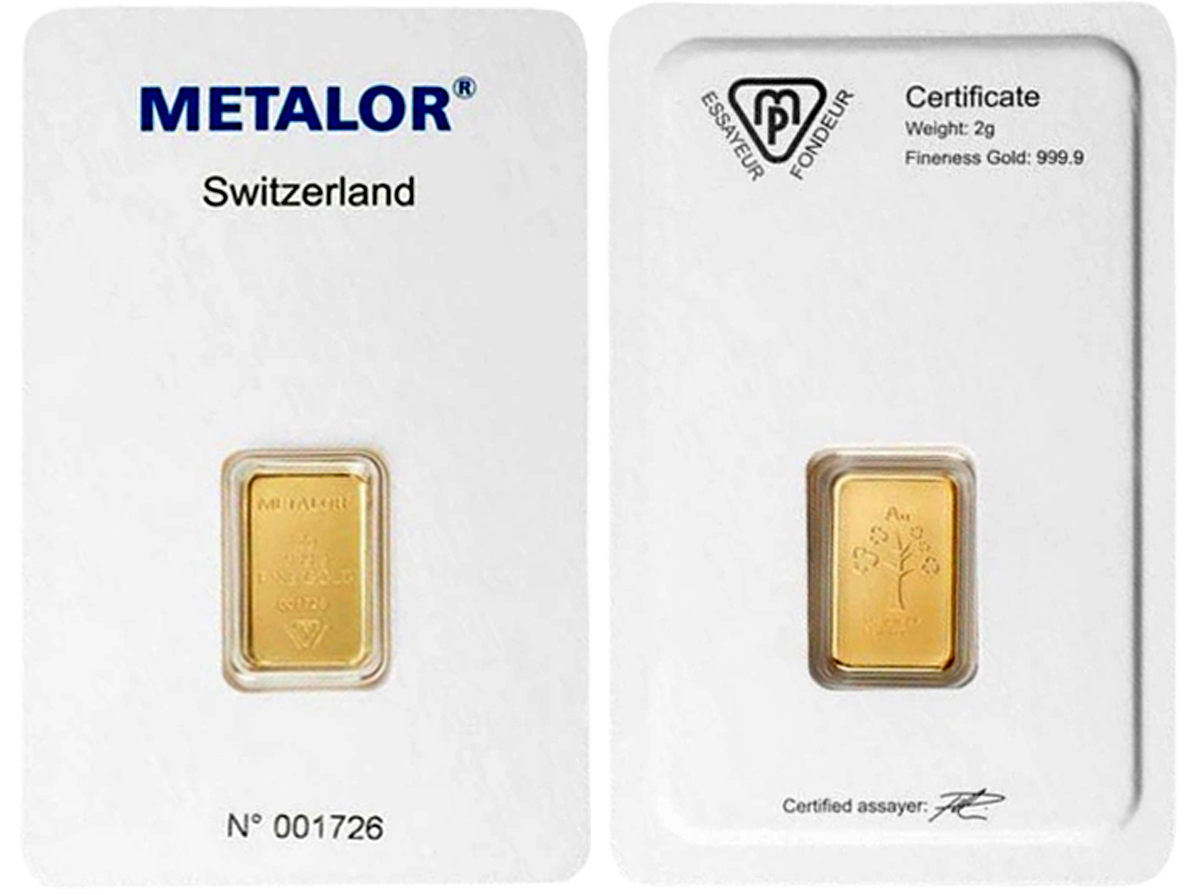 Sztabka złota MIX 2gsztabki pochodzące z obrotu wtórnego, w starych lub porysowanych blistrach, jak również luzem, ale trzymające wymaganą masę, różni producenci, w większości LBMA - Dostępne od ręki!!! |