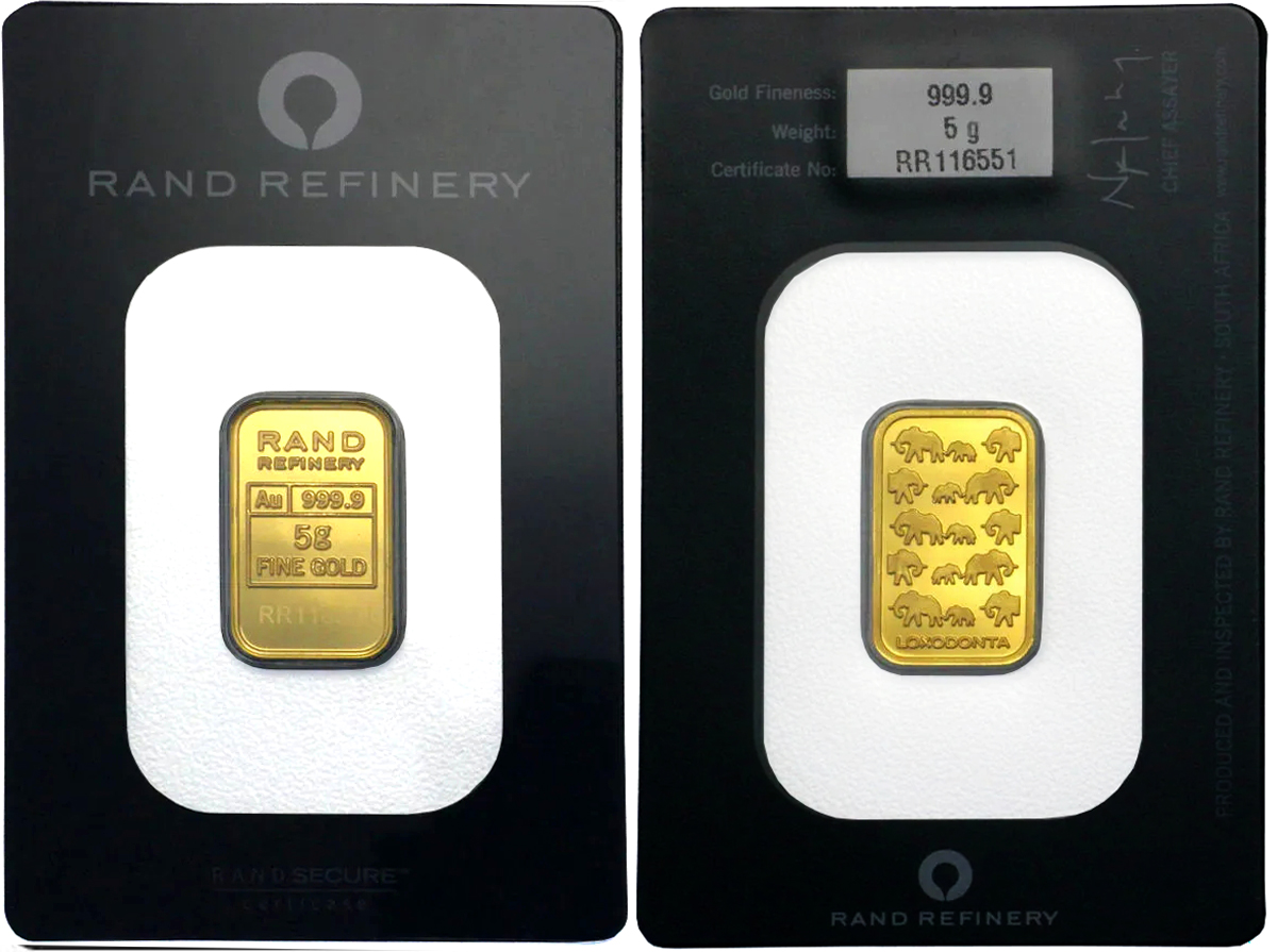 Sztabka złota MIX 5gsztabki pochodzące z obrotu wtórnego, w starych lub porysowanych blistrach, jak również luzem, ale trzymające wymaganą masę, różni producenci, w większości LBMA - Dostępne od ręki!!! |