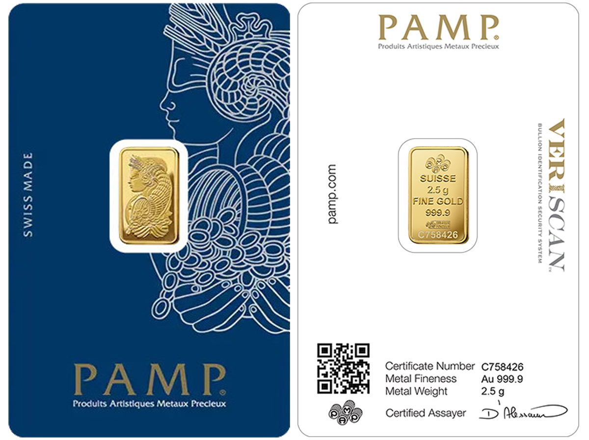 Sztabka złota Valcambi 2,5g Nowasztabki z czystego złota pr.999,9 szwajcarskich mennic Valcambi, Argor, Heraeus, PAMP gwarantujących najwyższe standardy jakości i czystości złota, akredytacja LBMA. Dostępne!! |
